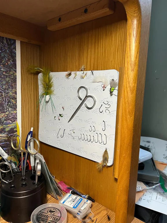 The Mag Pad XL is another excellent addition to your Lid Rig arsenal. These are very strong magnetic silicone stickers that are great for rafts, dashboards, coolers, tying desks, vice bases, skiffs and anything else you can think of!